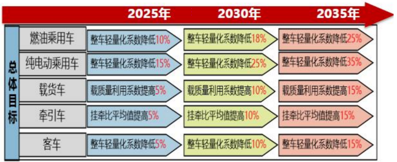 從《節能與新能源汽車(chē)技(jì)術(shù)路線圖2.0》可(kě)以看出輕量化是國家(jiā)汽車(chē)戰略的一部分。